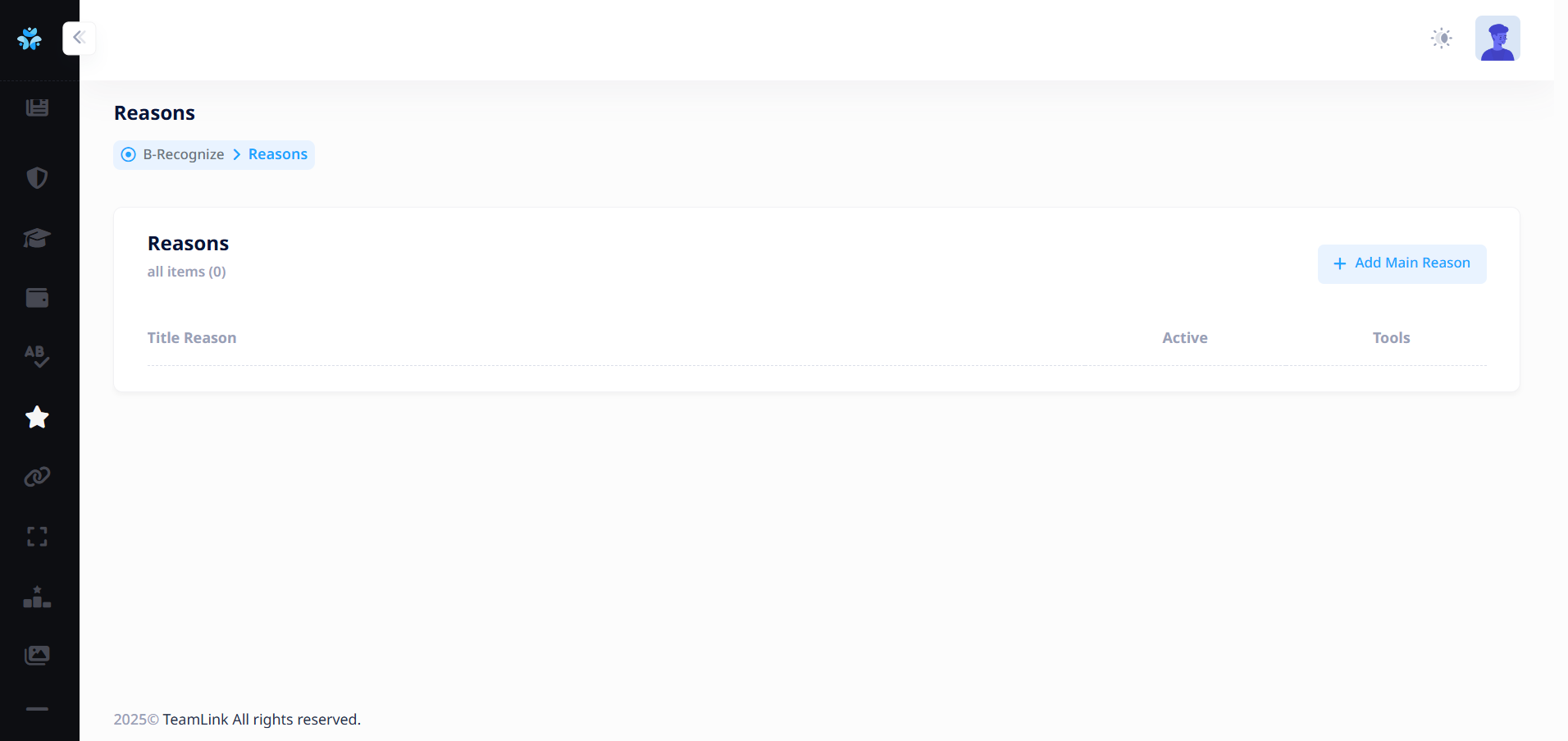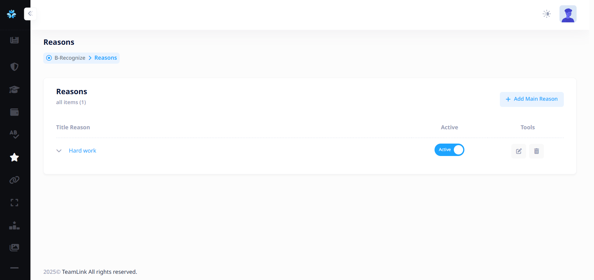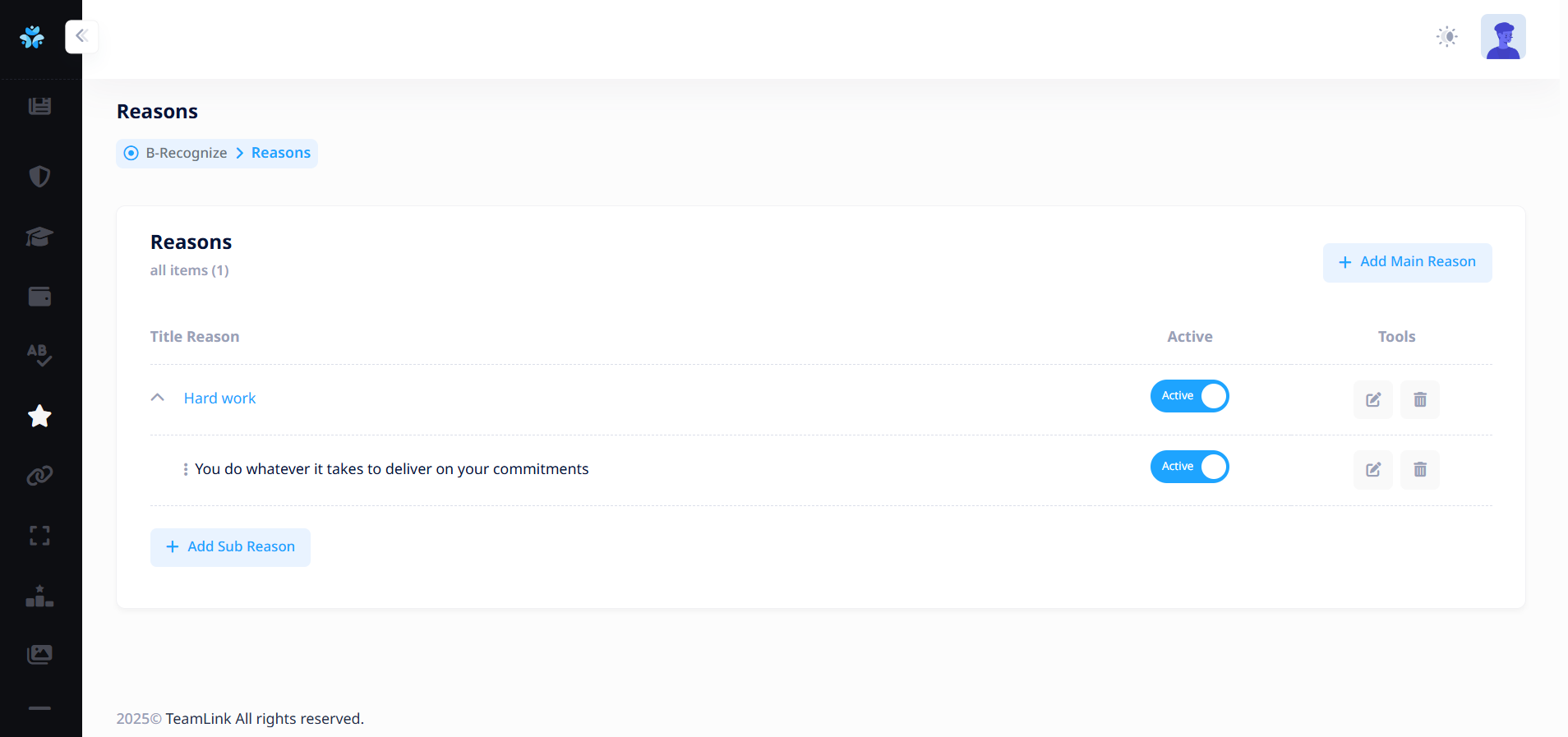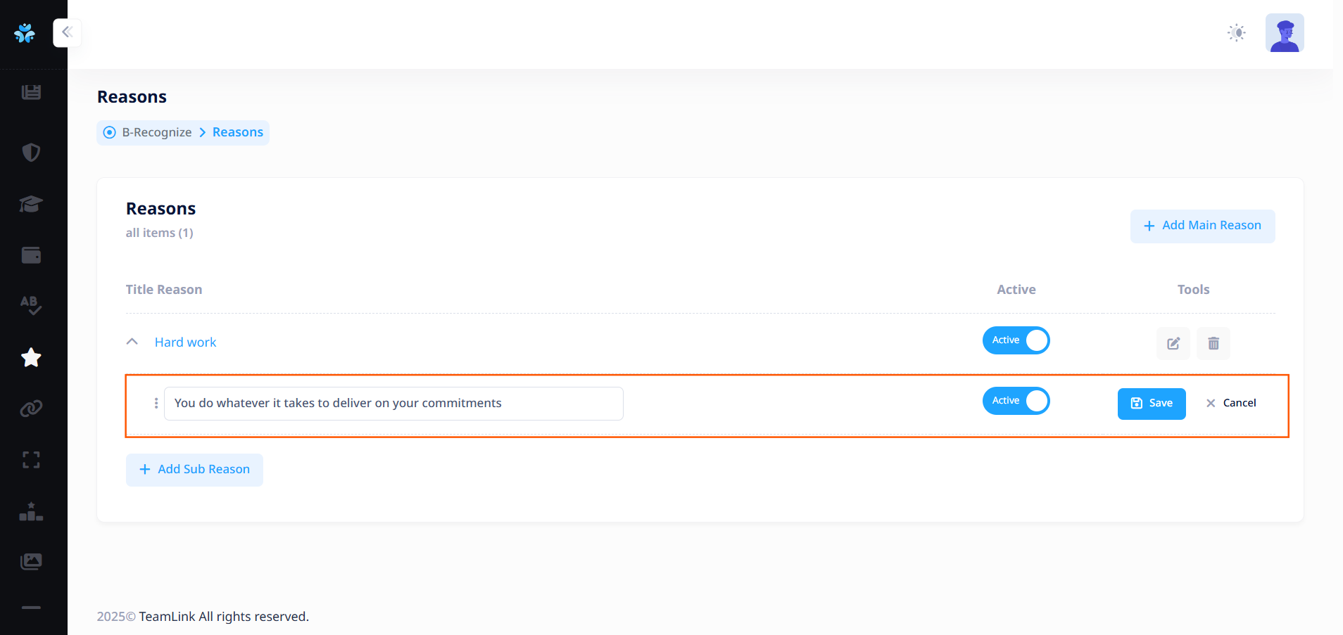 ผู้ใช้งานจำเป็นต้องเพิ่มเหตุผลย่อยประกอบ เพื่อเป็นตัวเลือกให้พนักงานที่มอบดาวให้กับผู้อื่นเลือก หากไม่มีเหตุผลย่อย ระบบจะไม่สามารถให้ดาวได้