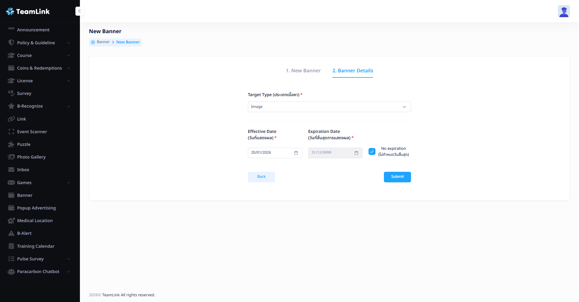- Title (ชื่อแบนเนอร์) : ตั้งชื่อแบนเนอร์