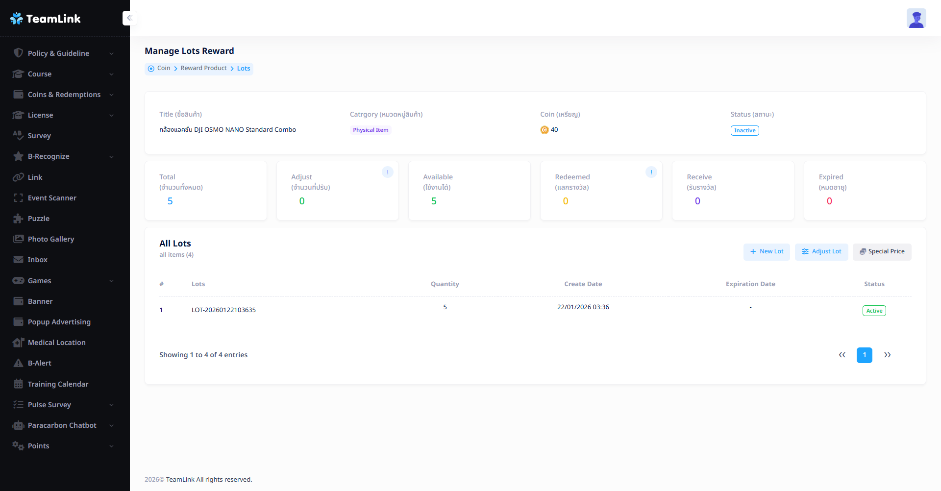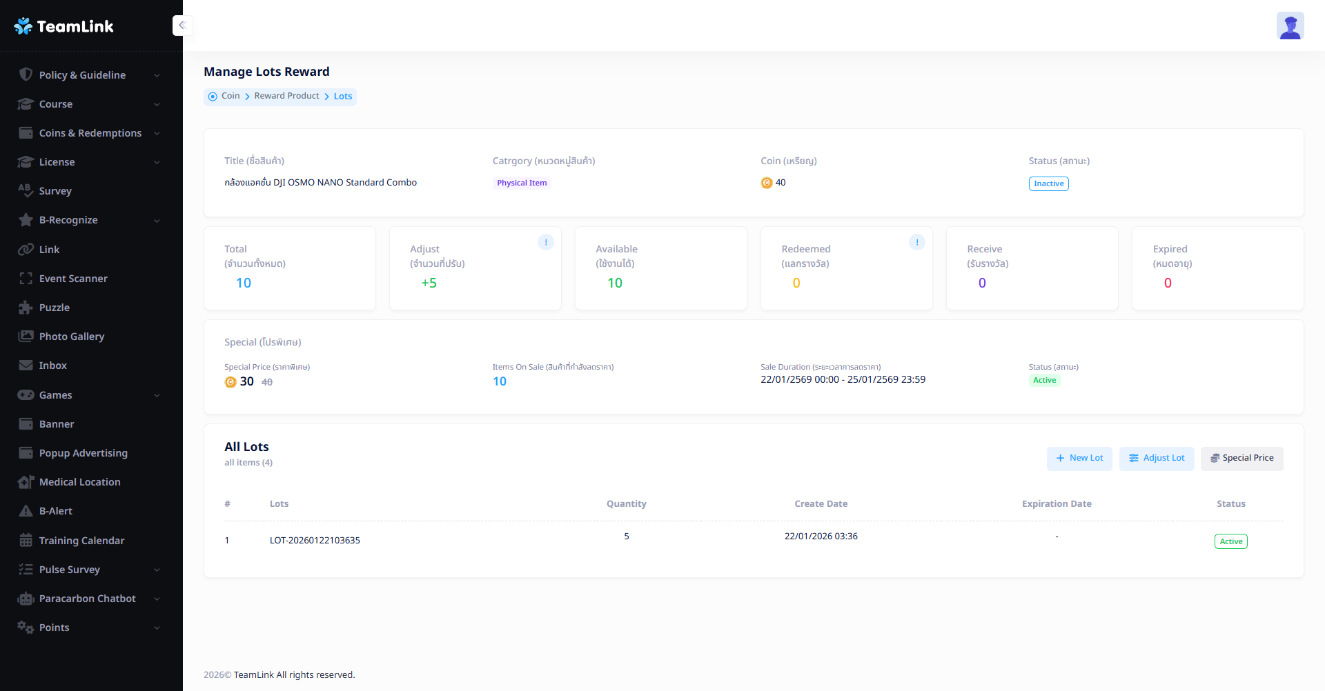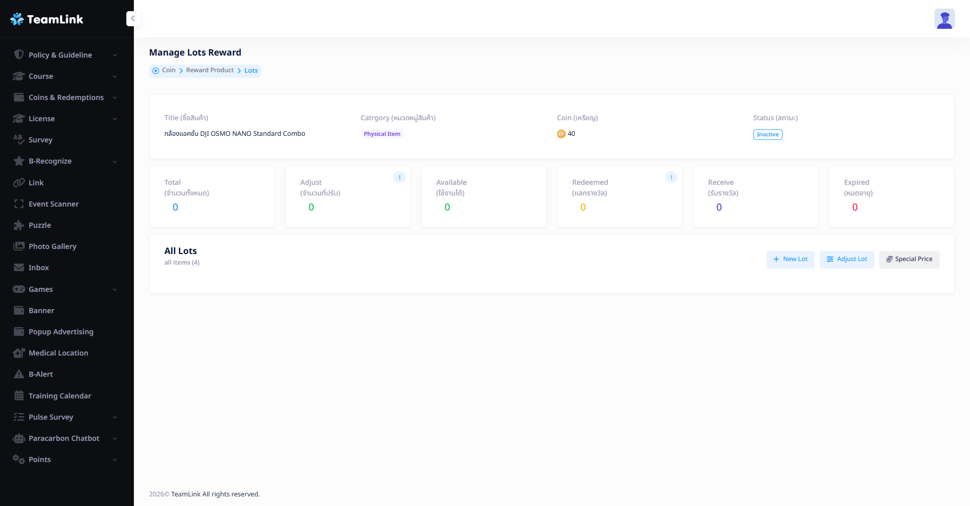 หลังจากกดปุ่ม ระบบจะพาไปหน้า Manage Lots Reward ดังรูปด้านล่าง