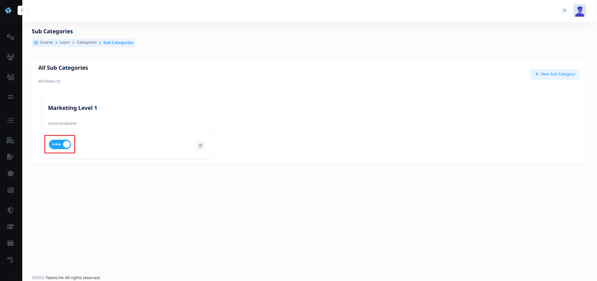 ผู้ใช้งานสามารถกดเปิด-ปิด สถานะการใช้งานหรือการมองเห็นของ Sub Categories ที่สร้างได้จาก