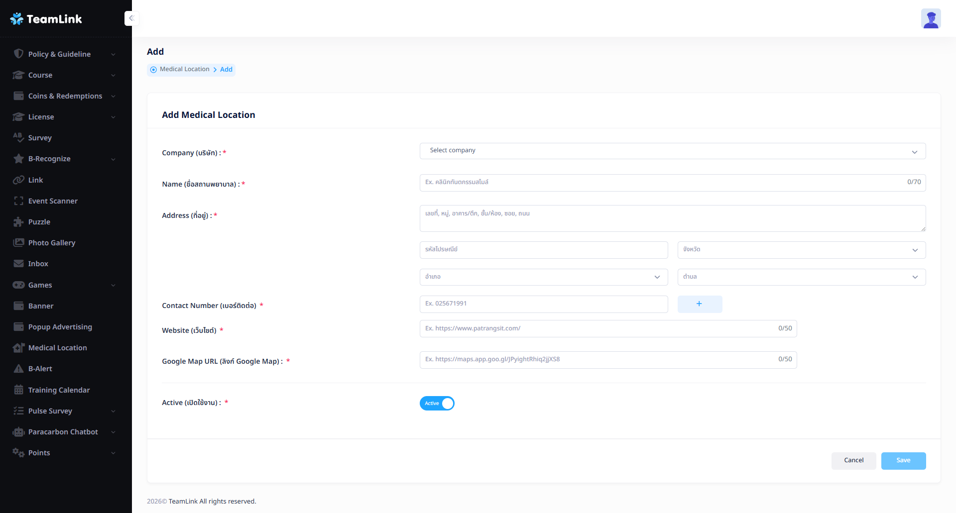 - Google Map URL (ลิ้งค์ Google Map) : ใส่ลิ้งค์ที่ตั้งของสถานพยาบาล