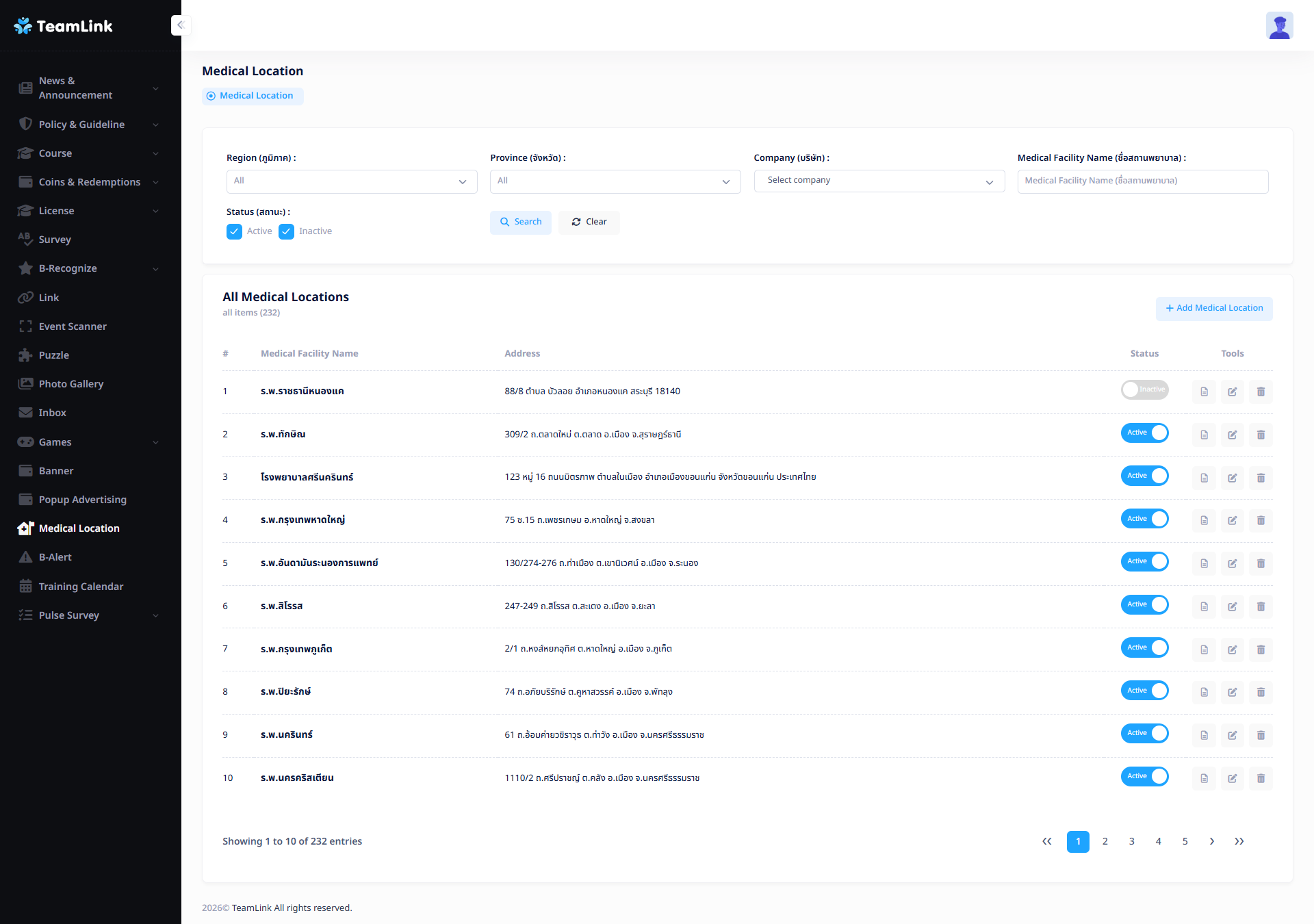 3. การจัดการสถานพยาบาล (Medical Locations)